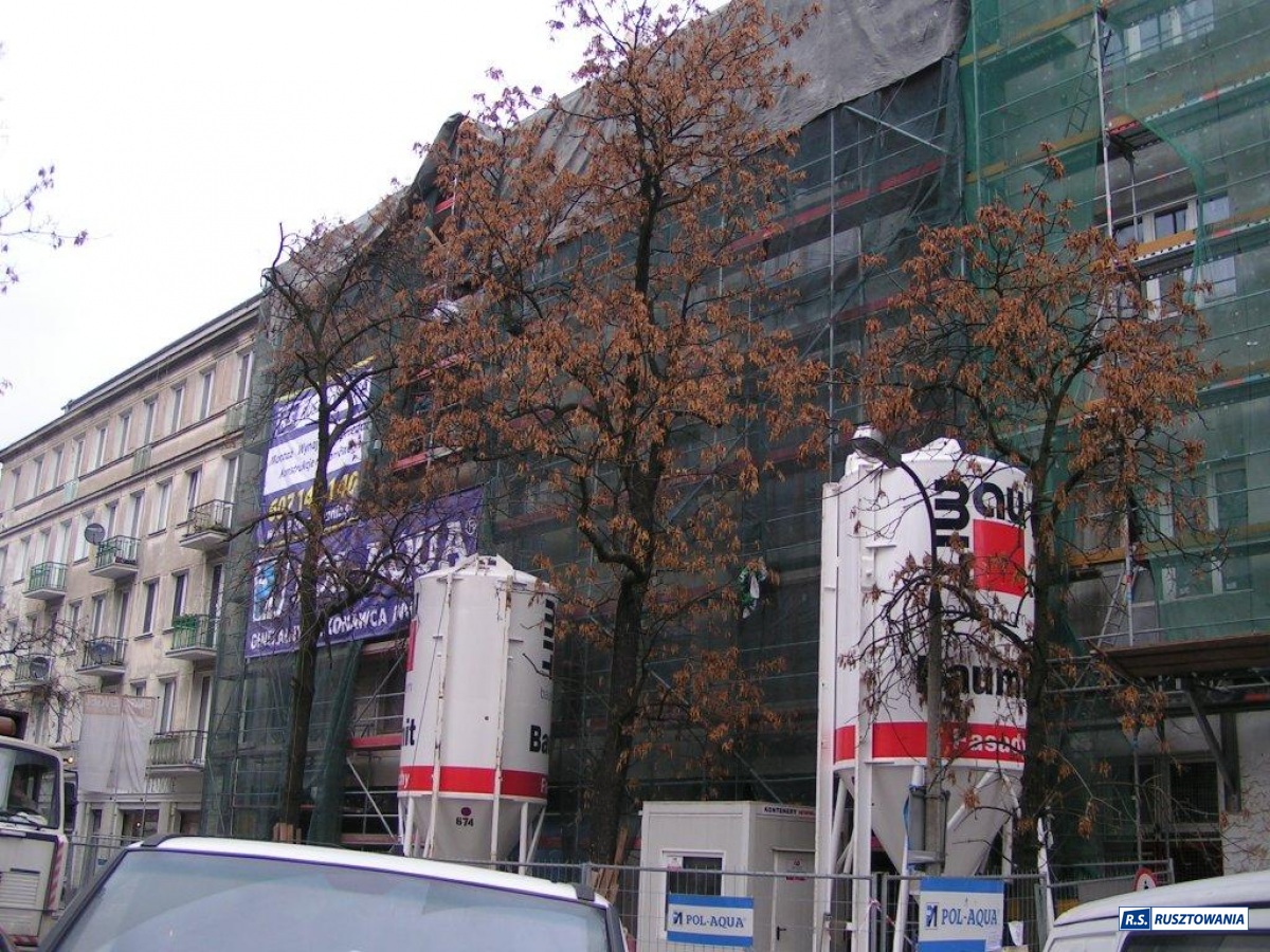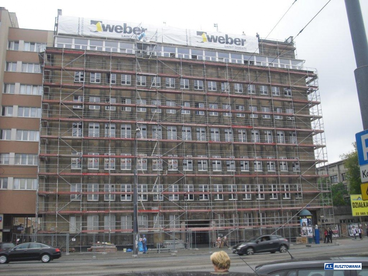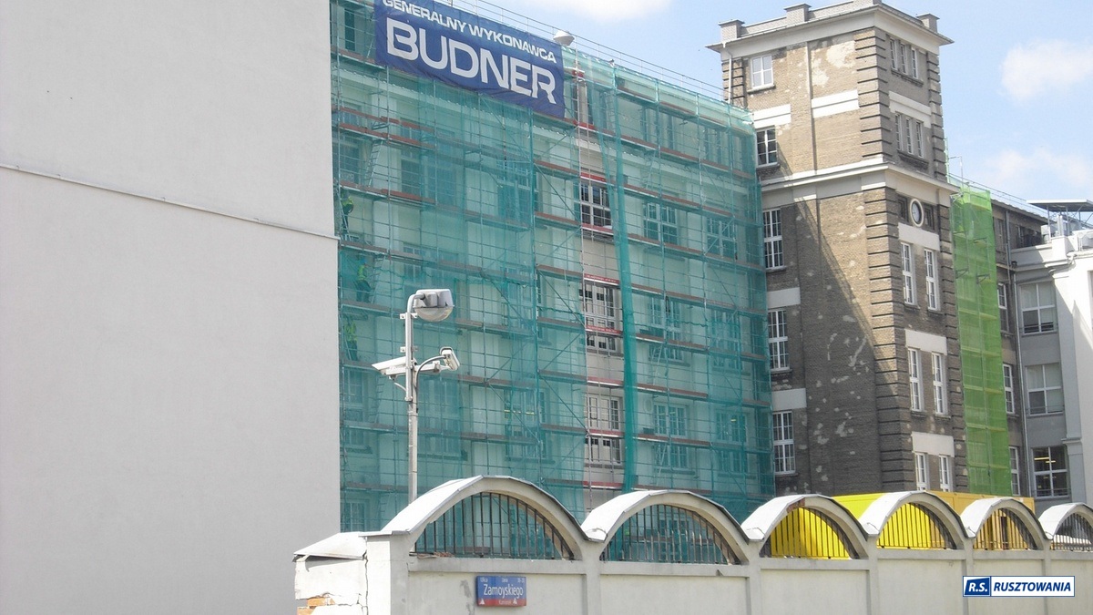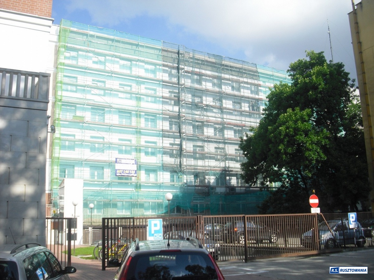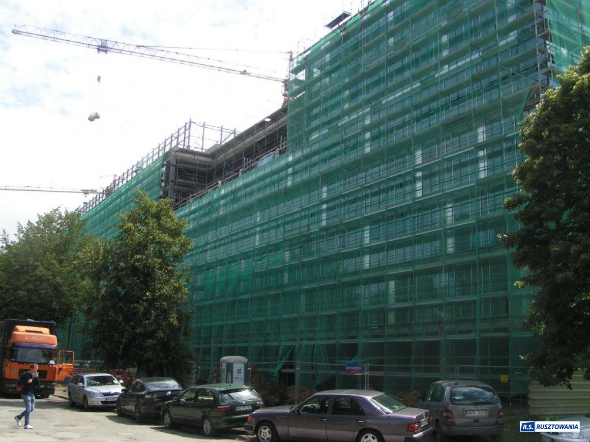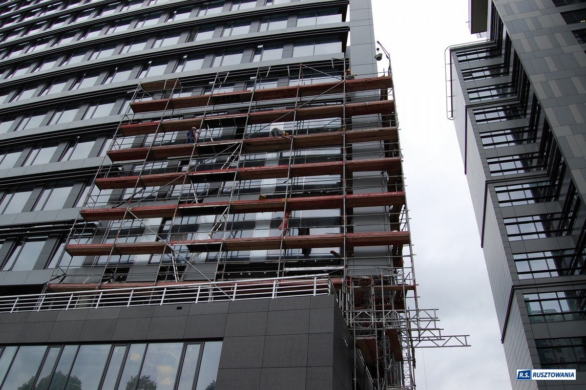 Rusztowanie do zabezpieczenia prac dekarskich, ul. Bagno, Warszawa