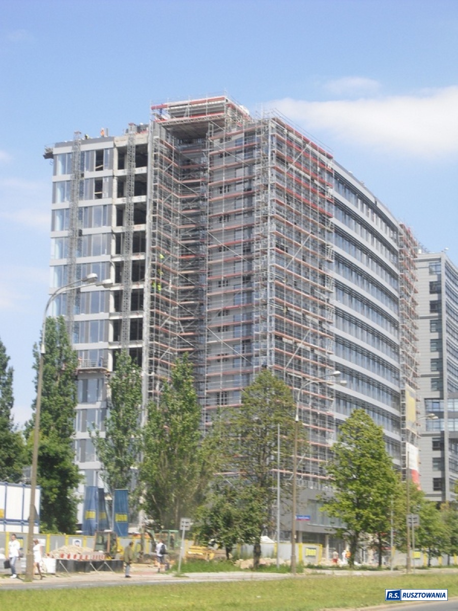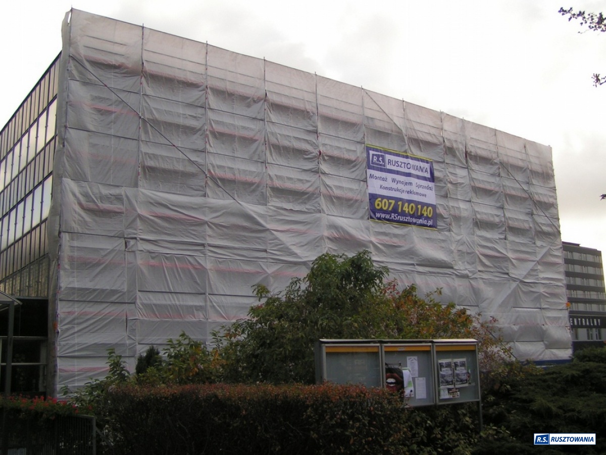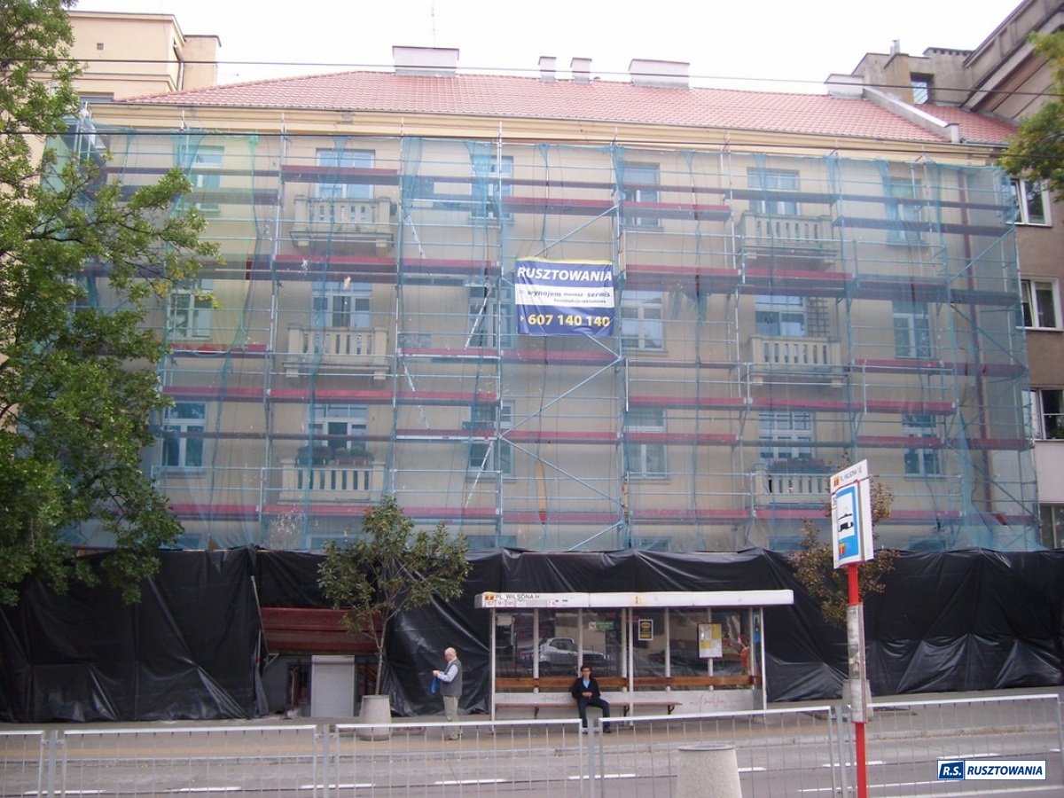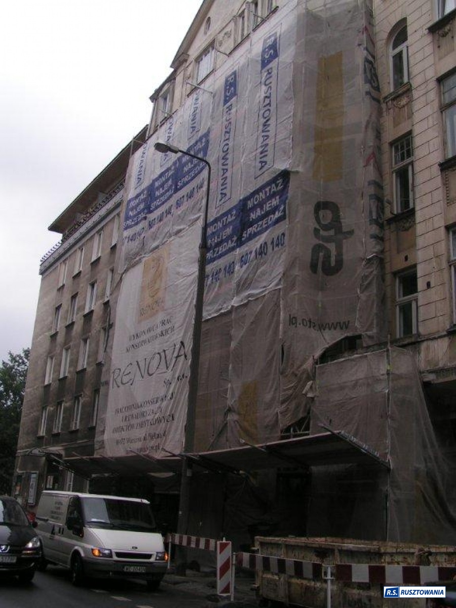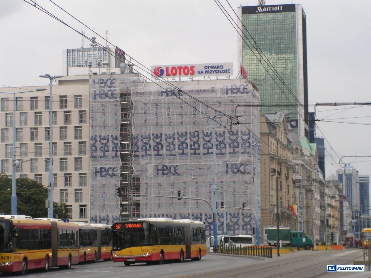 Rusztowanie do zabezpieczenia prac dekarskich, ul. Bagno, Warszawa