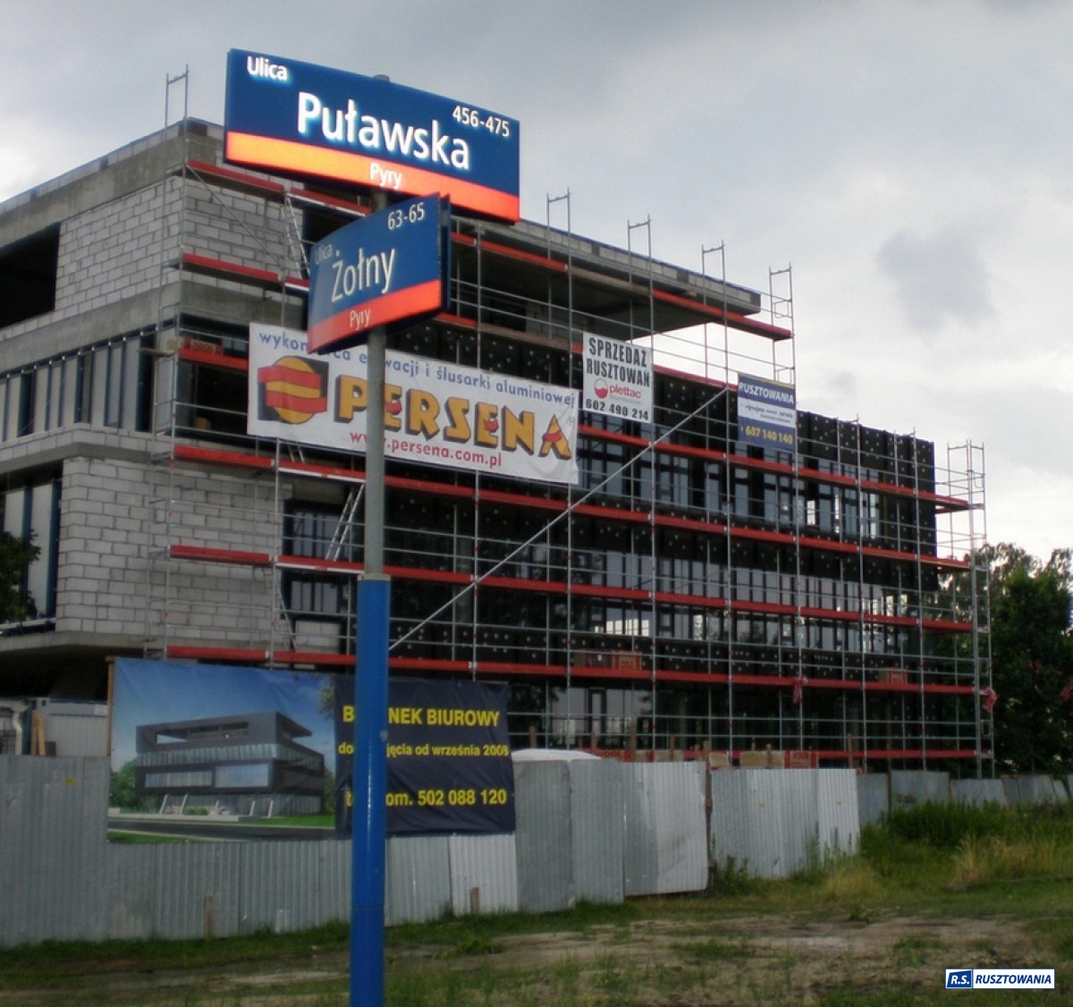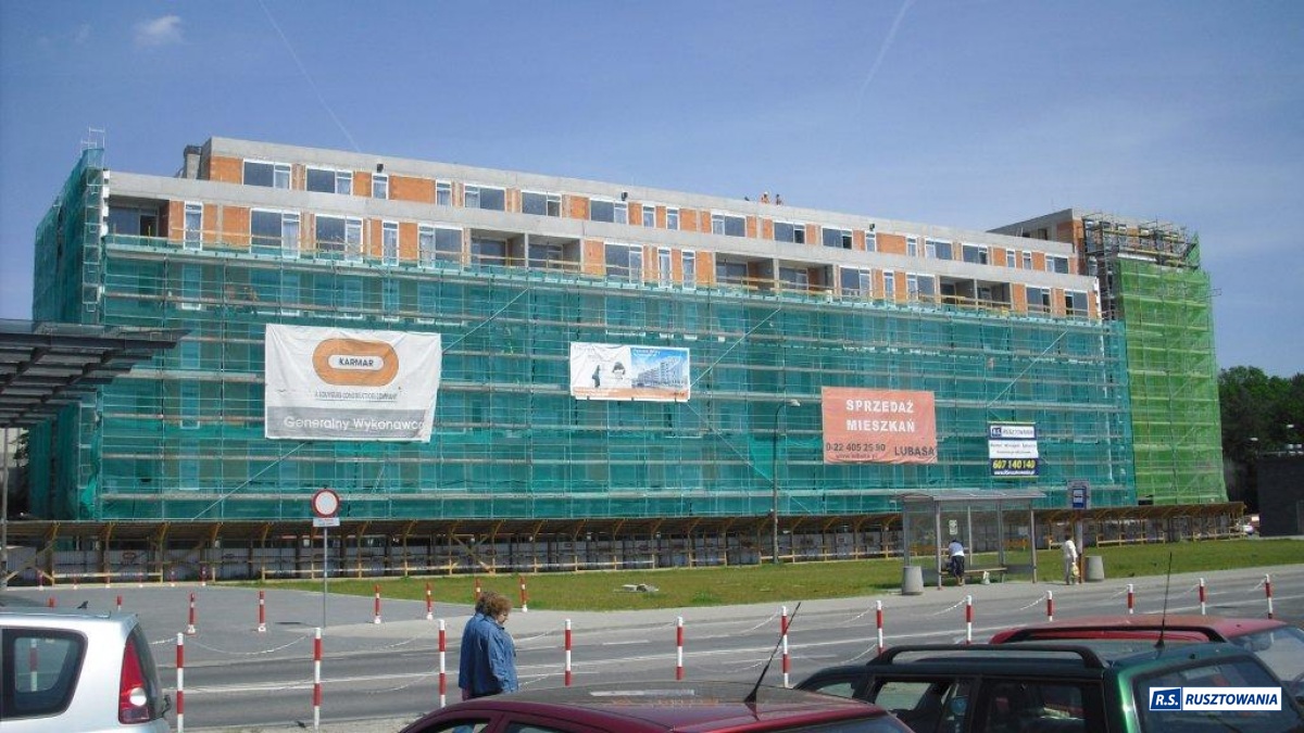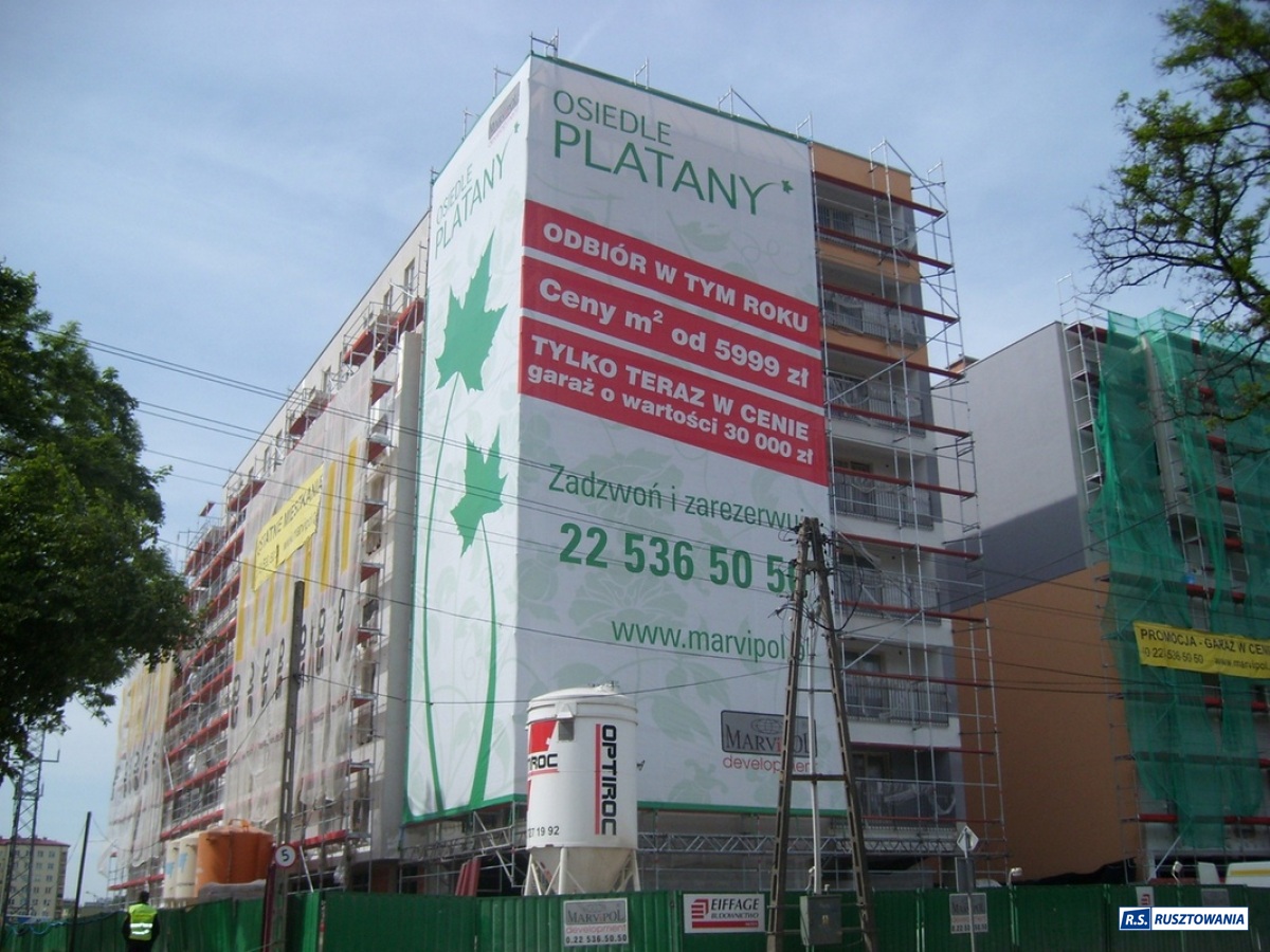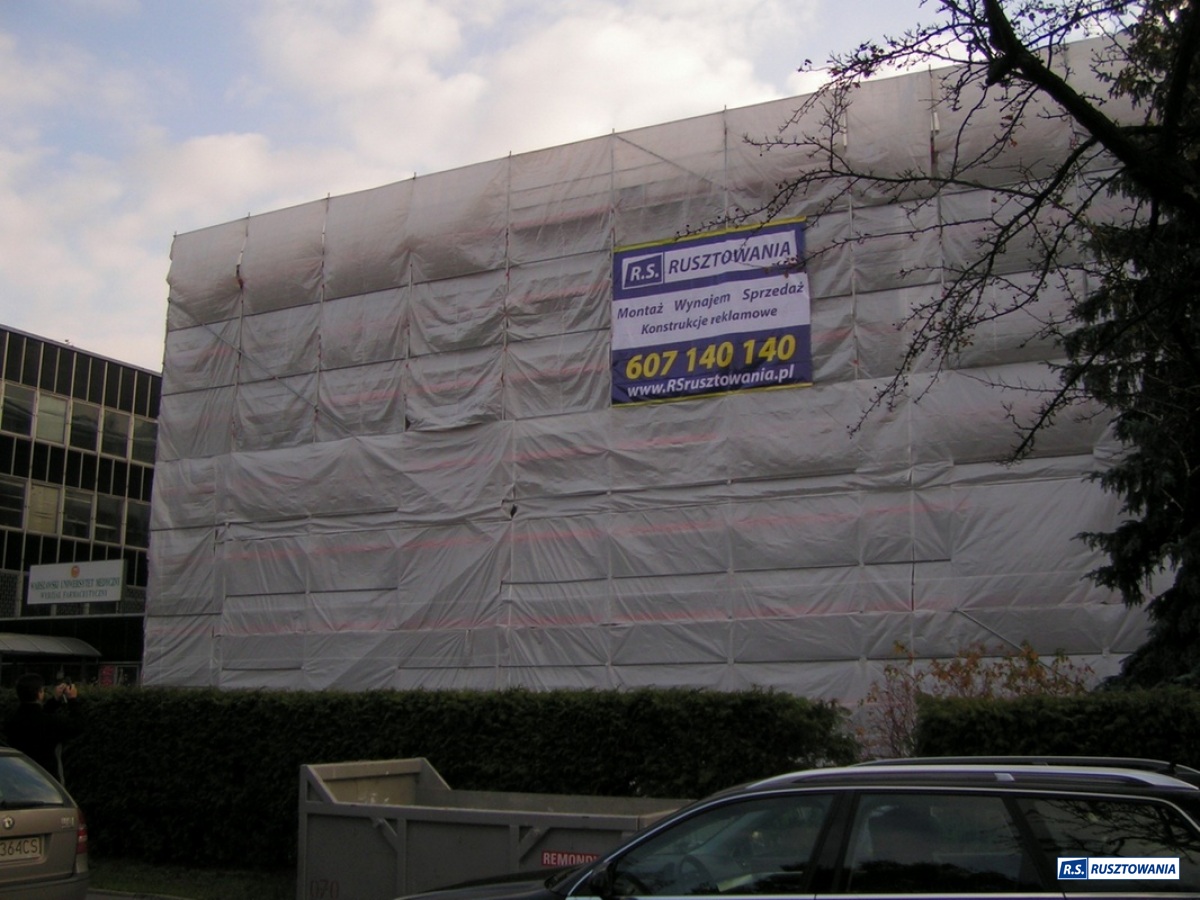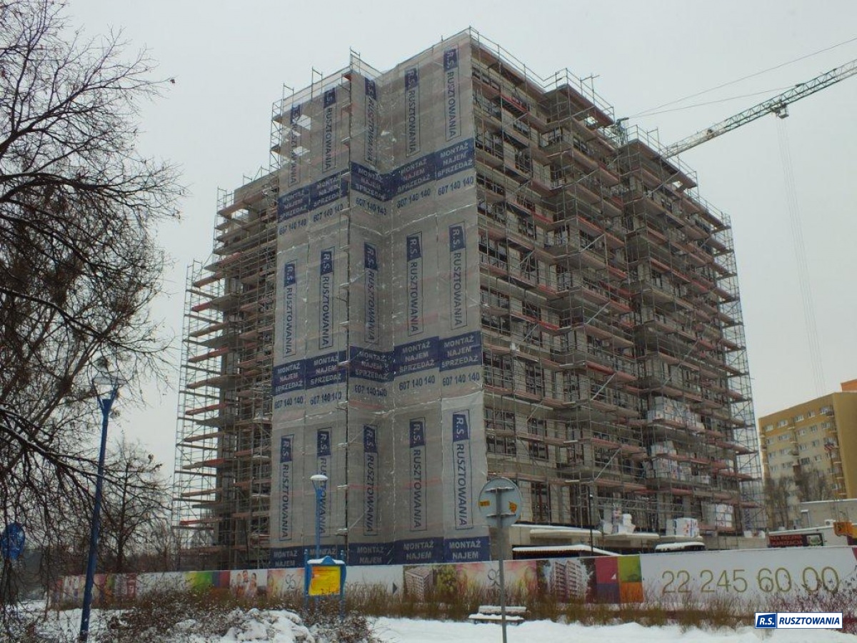 Rusztowanie do zabezpieczenia prac dekarskich, ul. Bagno, Warszawa